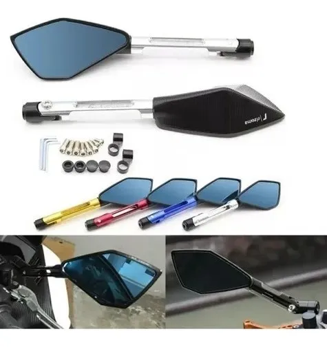 Espejo retrovisor universal para moto rizoma en aluminio, fácil instalación, viene con su kit de instalación.